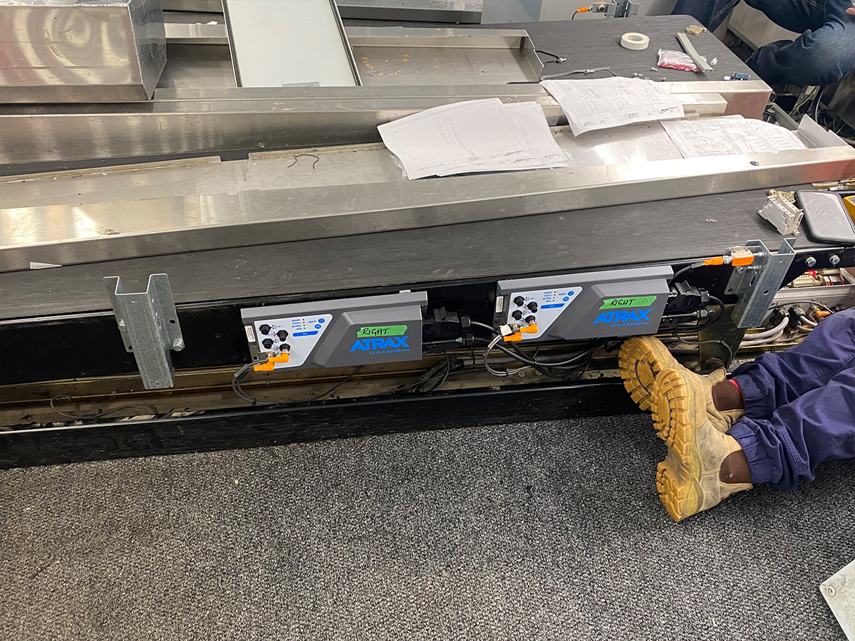 “We agreed to a trial run on Sunday morning, and by the afternoon concluded it would work,” Kevin says. “We installed a single lane of Atrax CCN-8 SoftDrives to prove our proposed solution. By Sunday afternoon we had one check-in lane operational with working scale and induct conveyors.